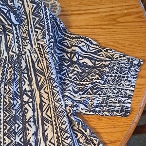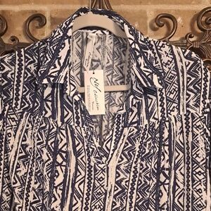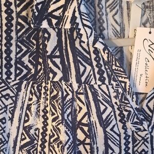 New with tags, NY Collection womens size 1X drop waist, two tier, shirt dress with pockets. Features a classic Navy blue and white pattern, a V-neckline with a shirt collar. No buttons or zippers, just pull over the head style for easy dressing and a pulled together look. Length is below the knee, side seam hidden pockets, short sleeves with wide elastic band cuffing. lightweight 100% Rayon fabric to keep you cool this spring and summer. layer under a blazer or jean jacket for extended seasonal wear. Perfect for any occasion. Experience comfort and fashion with the ease of dressing by adding this classic beauty toyour wardrobe. plus size, classic comfort.