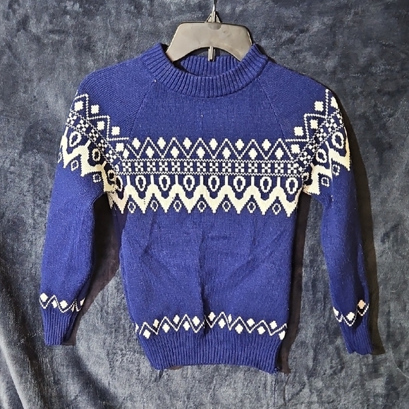 Stay warm and stylish with this blue patterned sweater. Perfect for any casual outing. As is. Made in Poland.