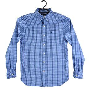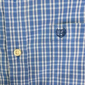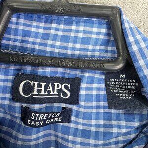 Mens Blue Plaid Chaps Shirt Long Sleeve Button Down Stretch Cotton Blend Size M