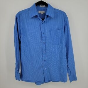 Men's Blue Plaid Eighty Eight Button Front Shirt,Size M