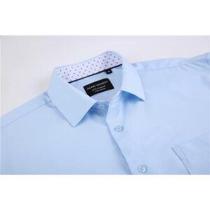 Men's Blue Polo Dress Shirts Regular Fit Long Sleeve Stretch Business T-shirt