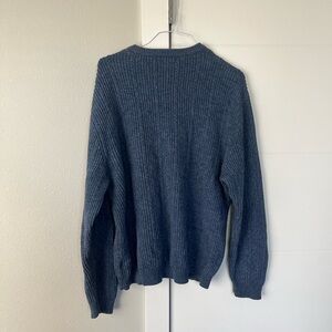 Stay warm and stylish with this classic blue ribbed sweater. Perfect for any occasion.