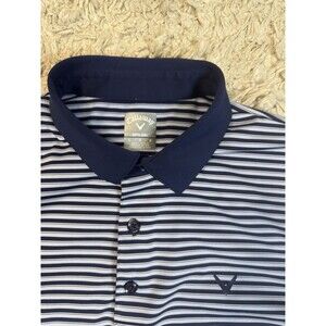 Men’s Blue Stripe Short Sleeve Golf Opti-Dri Polo Shirt size Large