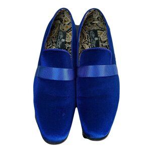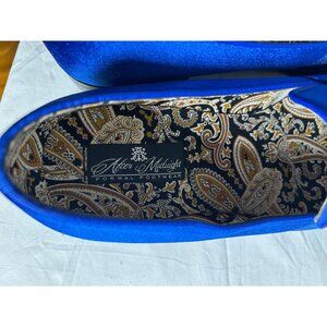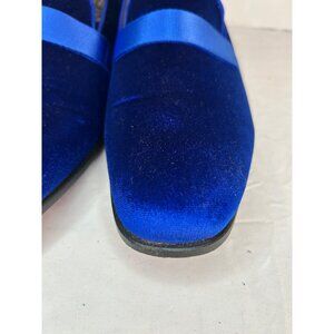 Mens Blue Velvet Loafers With Ribbon Accent & Paisley Lining Size 11