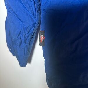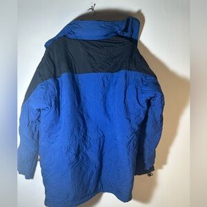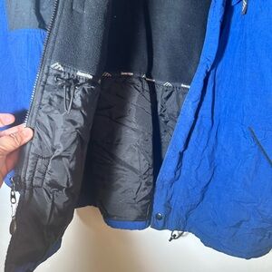 Stay warm and stylish with this blue and black jacket, perfect for any outdoor adventure.