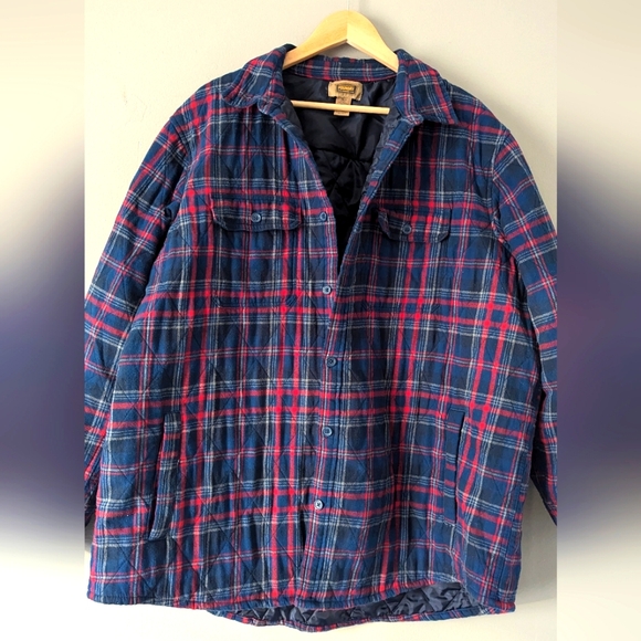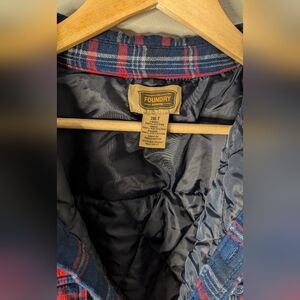 Men's Blue and red plaid button up jacket. The Foundry Supply Co. 2XLT
