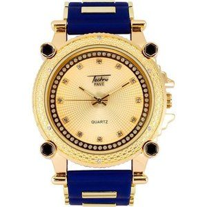 Mens Blue/Gold Fully Iced Out Watch