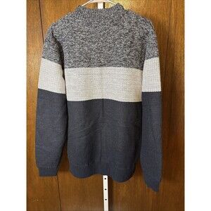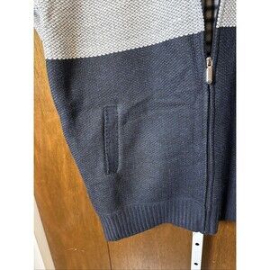 Men’s Blue/Gray Color Block Sweater Full Zip Size Large Pockets Fleece Lined XL