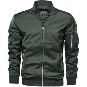 Men's Bomber Lightweight Jacket-Spring Fall Casual Thin Full Zip Army Green Sm