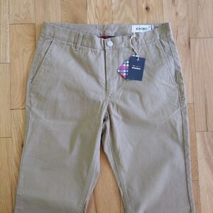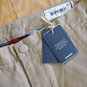 Men's Bonobos Khaki Slim Straight Fit Stretch Washed Chinos Pants Size 32 x 32 NWT. Inseam 31", rise 5", zipper and cool unique button closure. Mullti color plaid lined pockets and waist.
