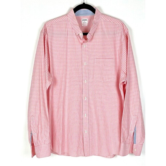 Men’s Bonobos Pink Gingham Casual Button Down Shirt Size L