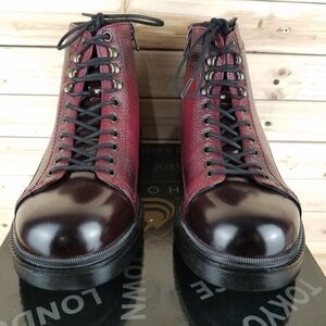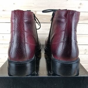 Men's Boots 10M 100% Genuine Leather Burgundy Biker Paul Branco Side Zip Lace-up