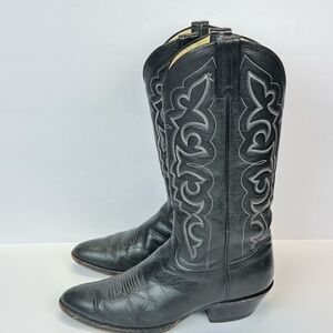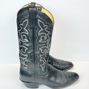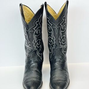 Mens Boots Size 9D Black Western Cowboy Boots with Embroidered Design