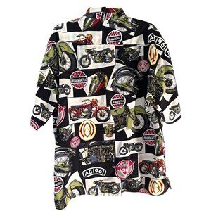 Men's Box Office Island Brand Button-Down Casual Shirt Motorcycle Theme Size L