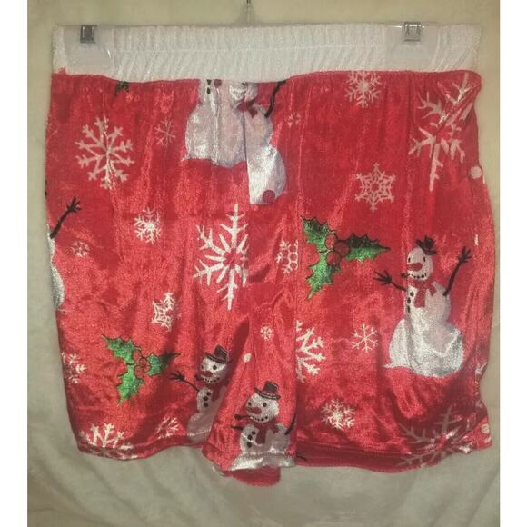 Mens Boxers M Red Christmas Velour Holiday Snowman Snowflake Mistletoe