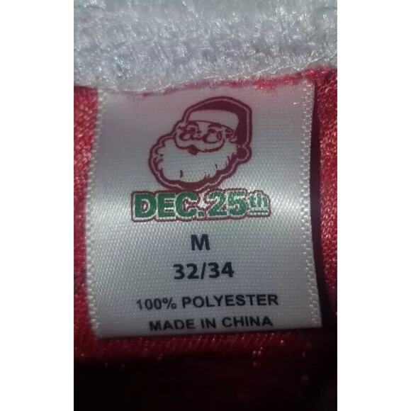 Get into the holiday spirit with these festive boxer shorts featuring Santa Claus, a holiday wreath, and mistletoe. The red velour material is soft and comfortable, perfect for lounging around the house. These boxers are available in size M and are perfect for men who want to add a touch of Christmas cheer to their wardrobe. The lightweight fabric makes them easy to wear and move around in. Hand wash only to keep them looking their best.