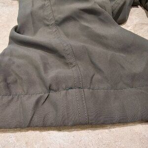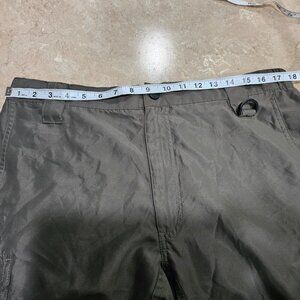 Men's Boy Scouts Of America BSA Switchback Convertible Pants Green Size Medium.  100% Polyester.  Although the pictures make the color look grey or brown, the color is olive green.  These have an elastic waist.  These measure approximately 36" for the waist, 30" inseam as pants and 10" inseam as shorts.  The seventh photo shows that these have been hemmed about 2" and the inseam measurement is based on being hemmed.  There is one small hole as shown in the second to last picture and discoloration as shown in the last photo.  Smoke free home.