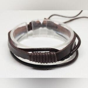 Men's Bracelet Leather Braided Layered Brown New f30