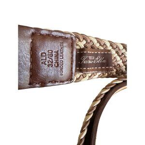 Men's Braided Belt Tan & Brown Bonded Leather & Woven Fabric Size 32/80