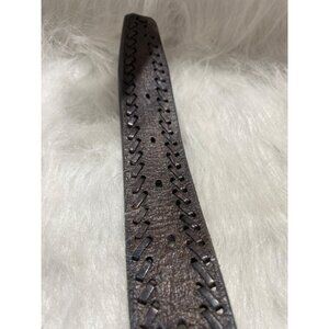 Mens Braided Leather Belt W/ Western-Style Buckle Size 46 Dark Brown