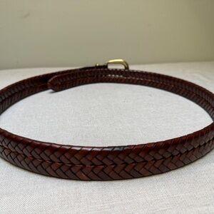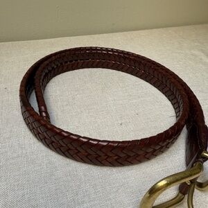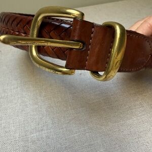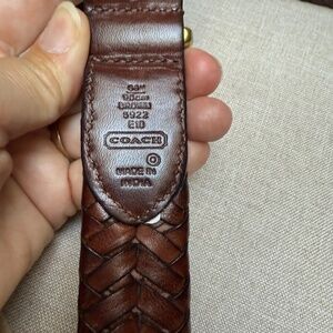 There is some light wear to the brass buckle, but the leather is in great condition. It is authentic Coach. It is a size large and measures 36 inches.