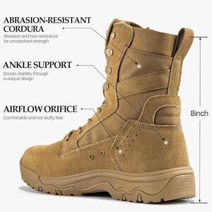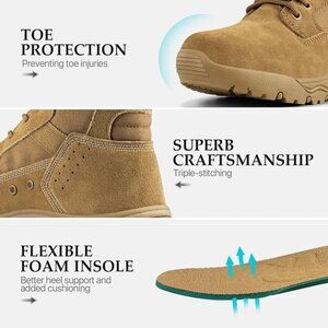 WATERPROOF & WARM The waterproof membrane inside the boots for men seals out water and allows moisture to escape, providing a static waterproof capability for up to 4 hours. These tactical boots ensure your feet stay dry in light rain or damp environments. With gusseted tongues that shield against wind and snow, and thick insulated high-tops that lock in warmth ,these mens work boots suitable for all seasons