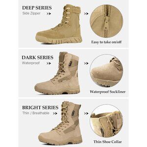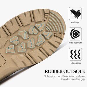 WATERPROOF & WARM The waterproof membrane inside the boots for men seals out water and allows moisture to escape, providing a static waterproof capability for up to 4 hours. These tactical boots ensure your feet stay dry in light rain or damp environments. With gusseted tongues that shield against wind and snow, and thick insulated high-tops that lock in warmth ,these mens work boots suitable for all seasons