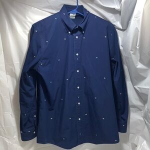Men’s Brooks Brothers Blue w embroidered accent along Sleeve Button Down Size XL