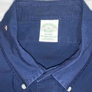 Men’s Brooks Brothers Milano Dark Blue w embroidered accent along Sleeve Button Down Size XL.