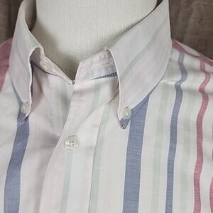 Men's Brooks Brothers Blue/White/Red Stripe Button Down Shirt Cotton Size Large