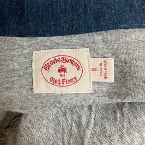 A men's Brooks Brothers blue cardigan sweater. 100% cotton. Dark blue with grey lining. Five buttons, pocket on each side. The "Red Fleece" model. Size small. Soft and comfortable. Never worn.