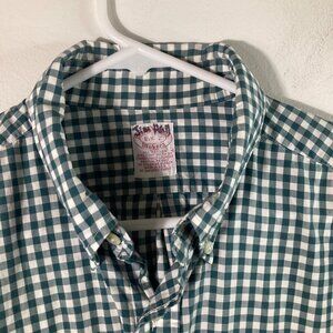 Mens Brooks Brothers Gingham Button Shirt Green White Cotton 16 1/2 Long Sleeve