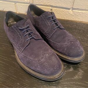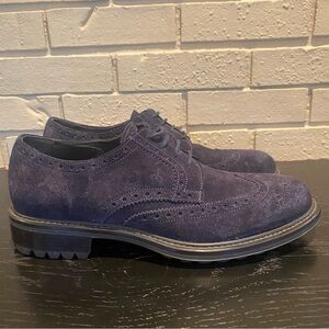 Mens Brooks Brothers Navy blue suede Wingtip Oxfords shoes Size 9 Made In Italy. Excellent condition with no flaws. Nice rugged soles and impeccable quality construction.