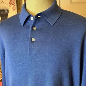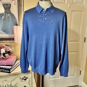 Men's Brooks Brothers Polo Style Silk Cotton Blend Sweater in Blue Size XL