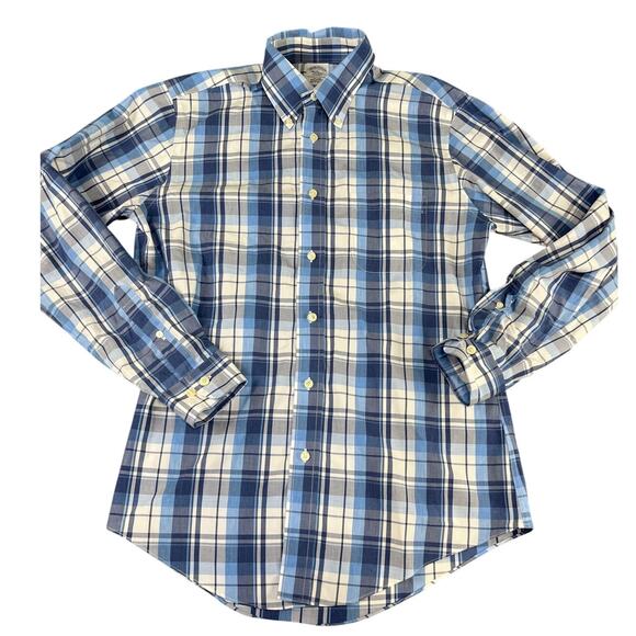 Men's Brooks Brothers Regent Blue Plaid Button Down Shirt Cotton - Excellent