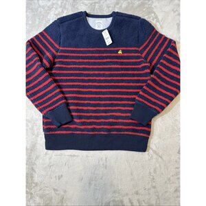 Men’s Brooks Brothers Teddy fleece pullover striped navy blue red size medium