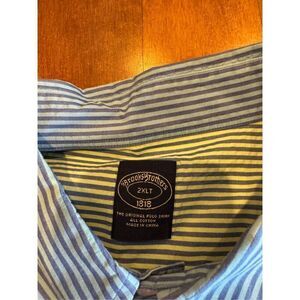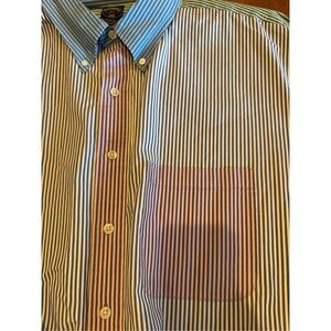 Men’s Brooks Brothers striped button-down shirt, size 2XLT. It was very gently worn like new condition. No holes rips or stains. Smoke free and clean home.
