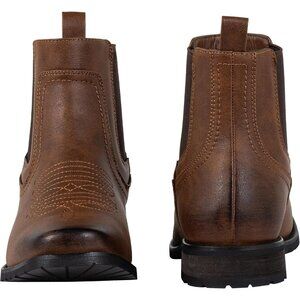 ⚡Men's Brown Chelsea Square Toe Western Boots Classic Casual Work Ankle Boots