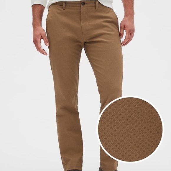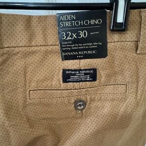 Men’s “Aiden” stretch chino from Banana Republic in size 32 (waist) x 30 (length). Brown with pattern.