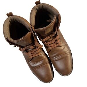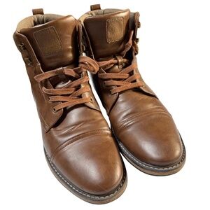 Step into style with these rugged yet versatile men’s brown lace-up combat boots from Target. Made with all man-made materials, these boots feature a cap-toe design, brass-tone eyelets, padded ankle support, and durable rubber outsoles with excellent traction.