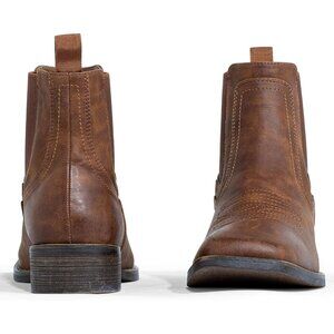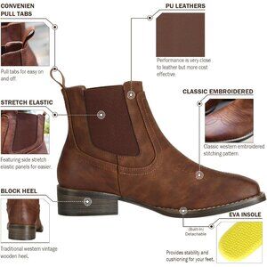 ⚡Men's Brown Faux Leather Western Square Toe Comfort Ankle Chelsea Boots