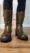 Step out in style with these very comfortable brown leather boots. Guys you can definitely dress up in these. I call em cowboy dinner date boots. Sorry I didn't have a man to model them, my significant other is currently at winter camp. In the county prison. However, these boots are in great shape. The insoles are so comfortable in true Born fashion. Get these today at a steal!