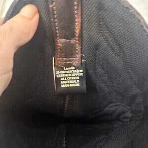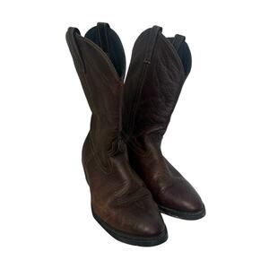 Ezxcellent USed Condition. Leather uppers and non skid soles. Label Laredo. Size 9 1/2. Shaft height 11.5. Shaft circumference 15 inches Heel height one and 3/4.