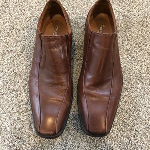 Men's Brown, Mike Konos Italian Shoes (Size 9) ... Slip on loafer. Overall in good condition. Very easy, comfortable, utility pair of shoes. Easy to slip on and off. Slight wear on the right shoe, see the leather near the top of the loafer. Making these a great price.