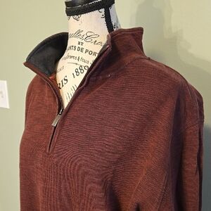 Stay warm and stylish with this maroon quarter-zip sweater. Perfect for any casual occasion.