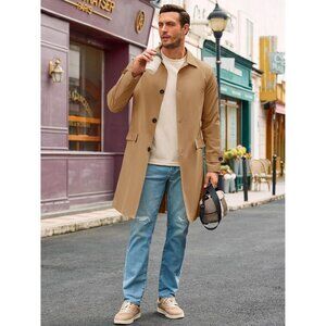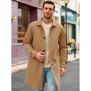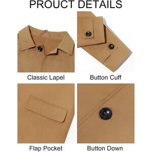 Features: This mid length trench coat with a timeless single-breasted design and classic lapel, giving you a sophisticated and stylish look for any occasion. The fall overcoat combines fashion and functionality, two large flap pockets and one inner pocket provides you with a sufficient storage.