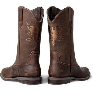 GRAIN LEATHER & PATRIOTIC EAGLE DESIGN Crafted from premium brown full grain leather cowboy boots, these men's western boots feature a classic American eagle embroidery design on the shaft, symbolizing rugged independence. The high quality leather naturally resists moisture and scuffs, developing a unique patina over time for a broken-in look that gets better with age.