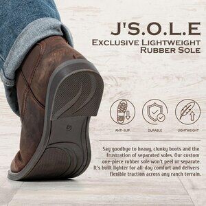 The wide square toe design provides ample room for your toes to spread naturally, reducing fatigue during long hours on the ranch or at western events. Combined with the 90° cowboy heel, it offers optimal stability in stirrups while walking or riding, ensuring all-day comfort.