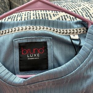 Men's Bruno Luxe Vertical Striped Blue NWT Short Sleeved T-Shirt Size Me…