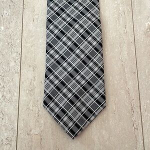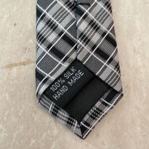 Men's Bruno Piatteli 100% Silk Plaid Pointed Suit Tie Black Grey Designer